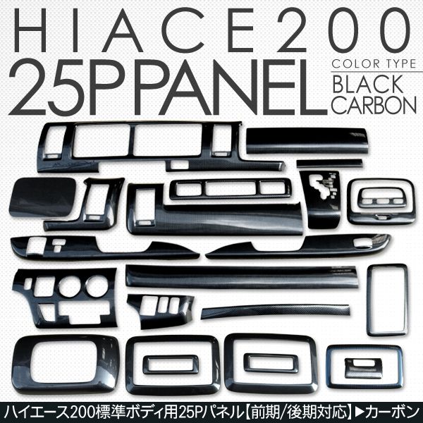 ハイエース 200系 レジアスエース 1型/2型/3型前期/3型後期 インテリアパネル/3Dパネル 25Pセット 標準ボディ 内装 カスタム パーツ