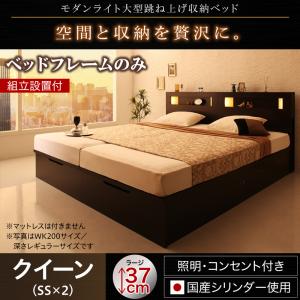 組立設置付 モダンライト大型跳ね上げ収納ベッド Nataliya ナターリヤ ベッドフレームのみ 縦開き クイーン(SS×2) 深さラージ※マットレス別売り マットレス無 マットレス別 ベットフレーム単品 木 木製 収納 収納ベッド ベッドフレーム ベッド 跳ね上げ式